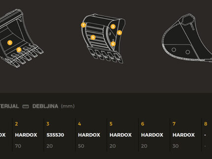 Korpe od vrhunskih HARDOX, WELDOX materijala opremljene najkvalitetnijim habajućim elementima ESCO.